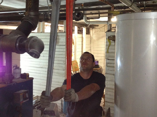 The next step was to replace the heating boiler, upgrading to a Burnham independence KIN11 steam boiler which was sized based upon our calculations for heating needs for the entire building. We removed the old boiler, assembled the new boiler, installed new steam header, equalizer, Hartford loop, returns, main vents, and gas piping. We also made some corrections to the way the old system was piped including re-piping a 2 1/2" and 2" return that were tied in above the boiler water line. We then brought in a chimney company to install a liner in the chimney for exhaust venting, and a licensed electrician to install all the wiring. As this was a phased job it required that we coordinate a second visit from the inspector. The new system provided the building with quiet and efficient steam heat and has lowered their fuel usage substantially.